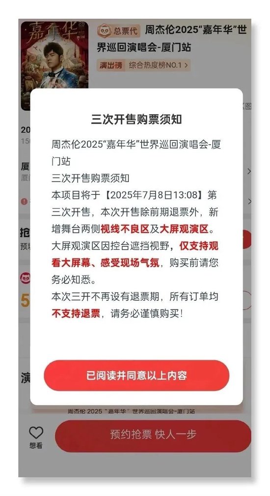 除了特殊票区的争议,周杰伦演唱会近期还遭遇了其他售票风波。